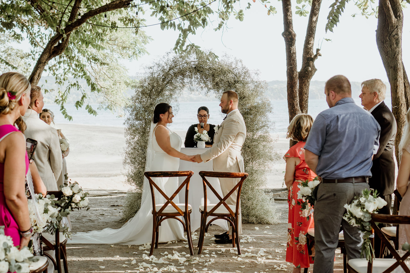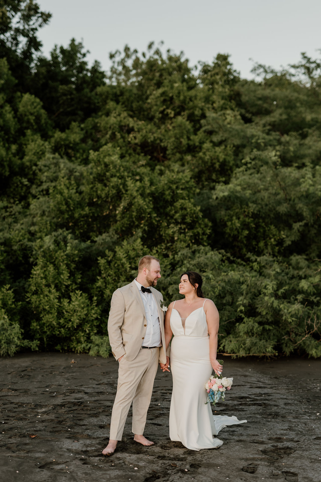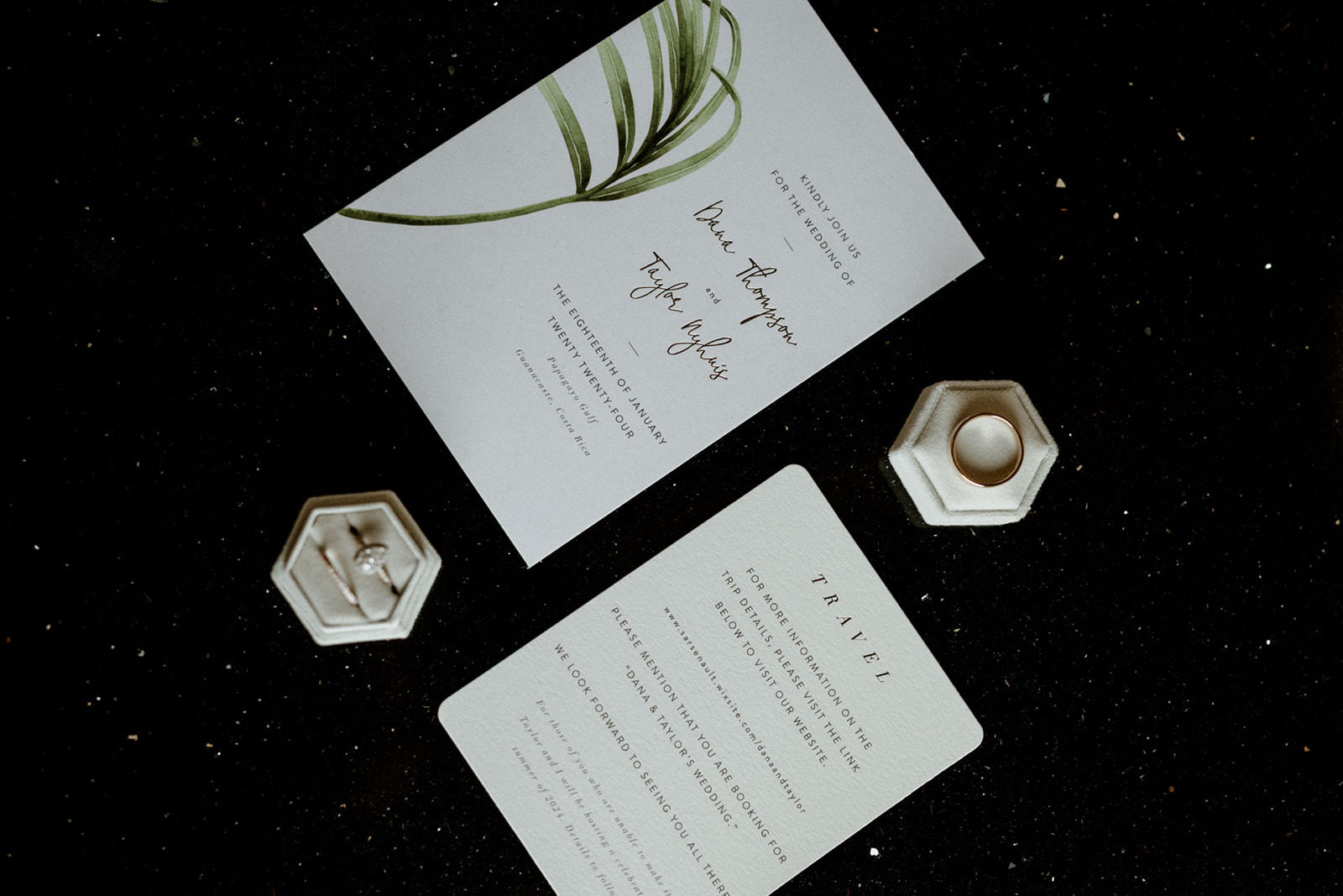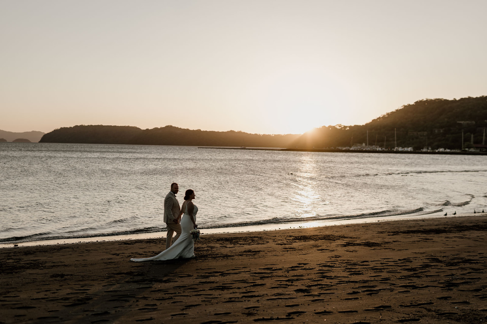 They traveled from Canada with a small group of close friends and family for an intimate celebration at Planet Hollywood Costa Rica. The day began with a beachfront ceremony framed by golden sand and lush tropical greenery, where Dana & Taylor exchanged vows in a relaxed, elegant setting. As the sun dipped low, they wandered barefoot along the shoreline for quiet sunset portraits before joining their guests on a rooftop terrace. The evening unfolded with laughter, music, and celebration, culminating in a vibrant fireworks display over the Pacific.