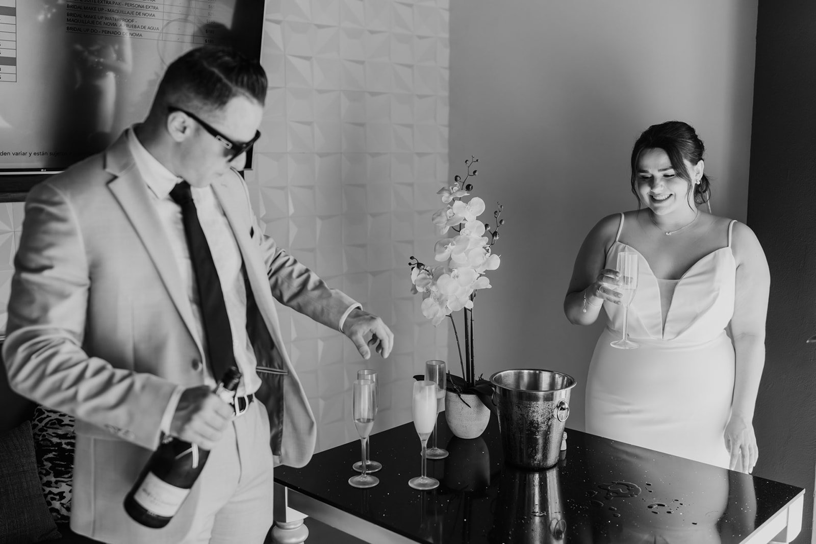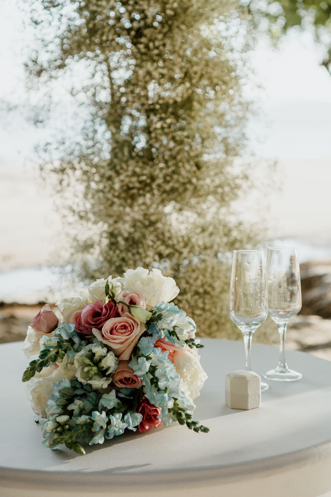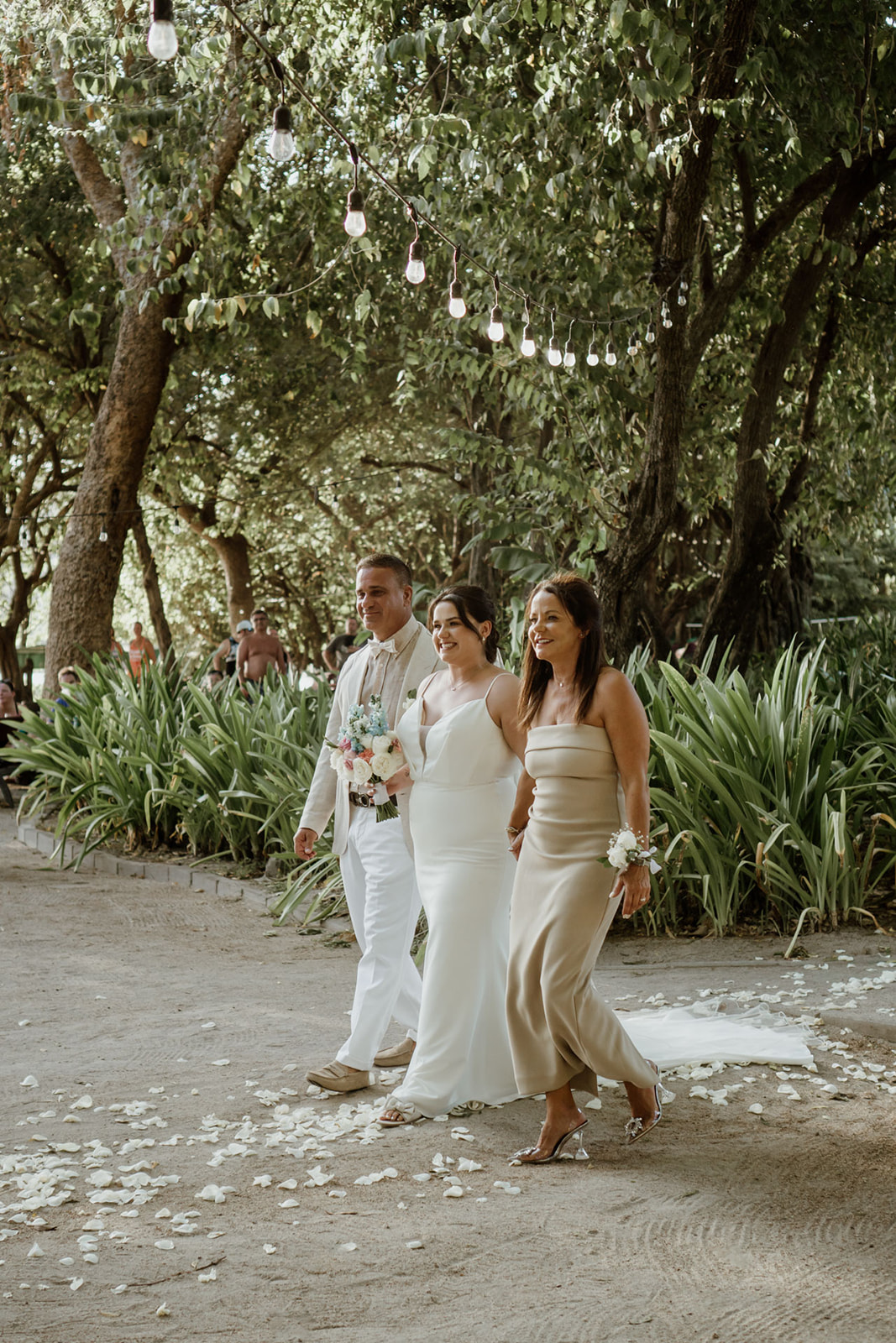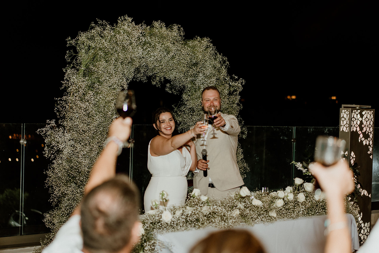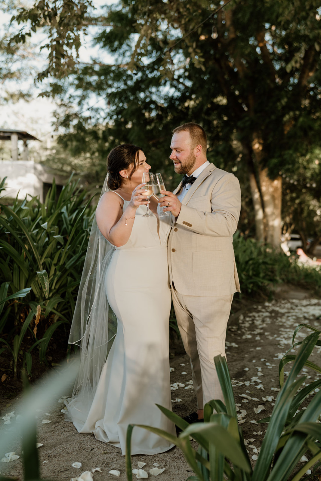 They traveled from Canada with a small group of close friends and family for an intimate celebration at Planet Hollywood Costa Rica. The day began with a beachfront ceremony framed by golden sand and lush tropical greenery, where Dana & Taylor exchanged vows in a relaxed, elegant setting. As the sun dipped low, they wandered barefoot along the shoreline for quiet sunset portraits before joining their guests on a rooftop terrace. The evening unfolded with laughter, music, and celebration, culminating in a vibrant fireworks display over the Pacific.