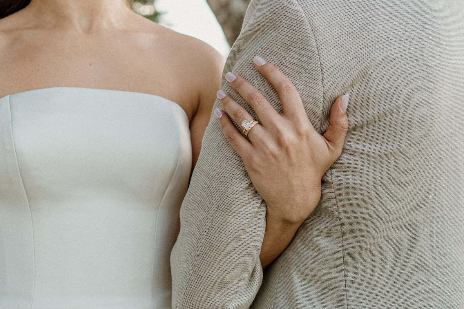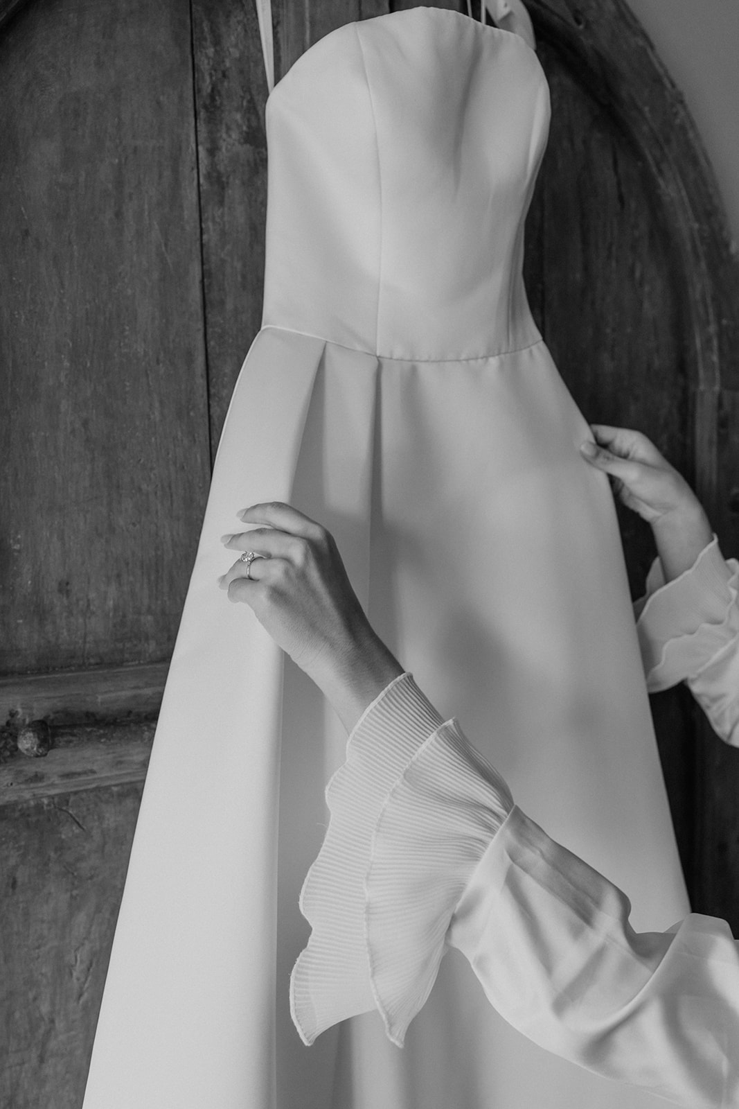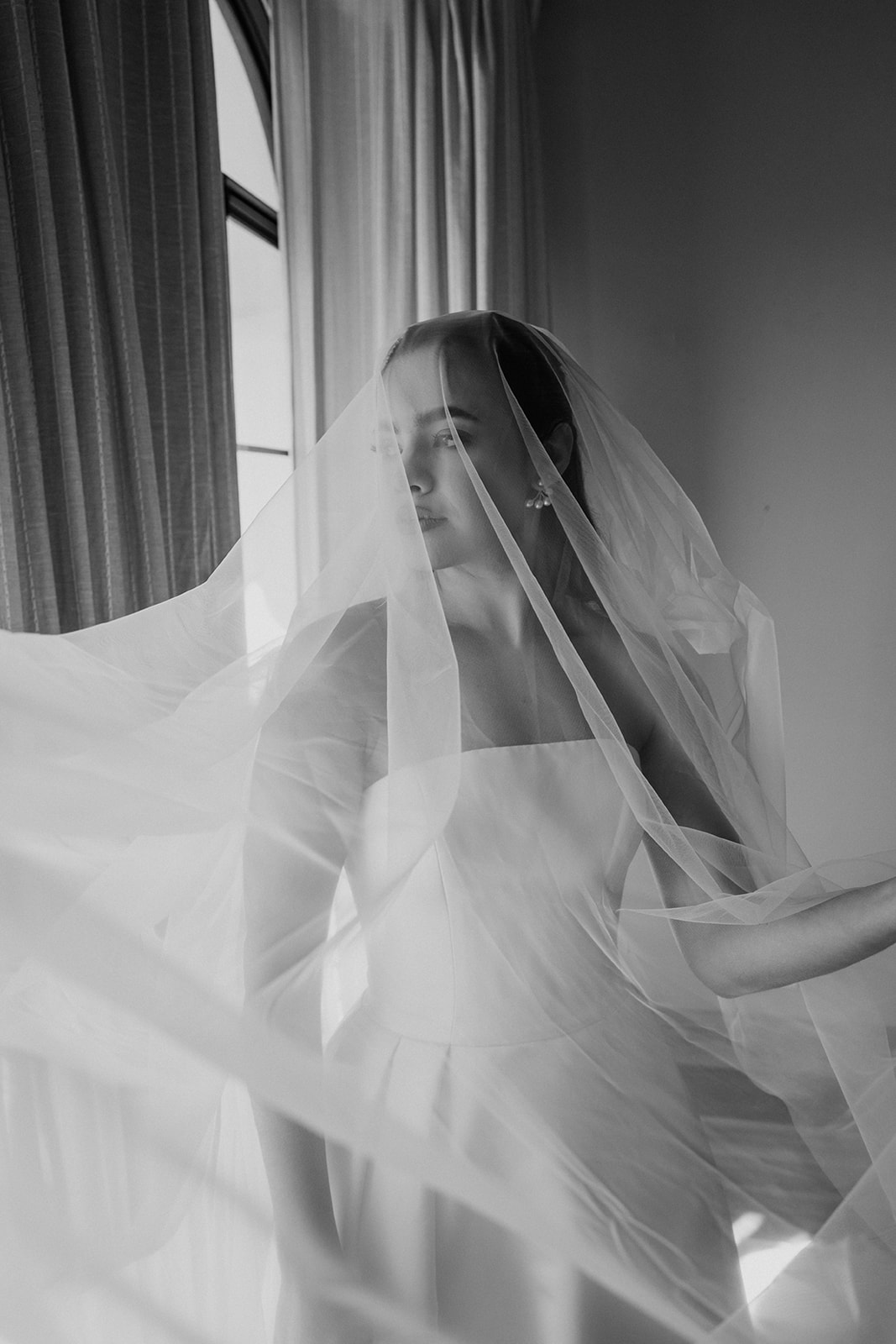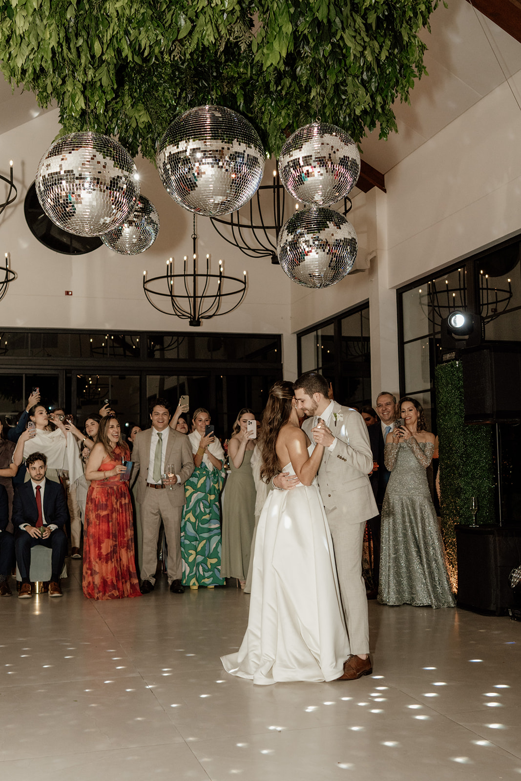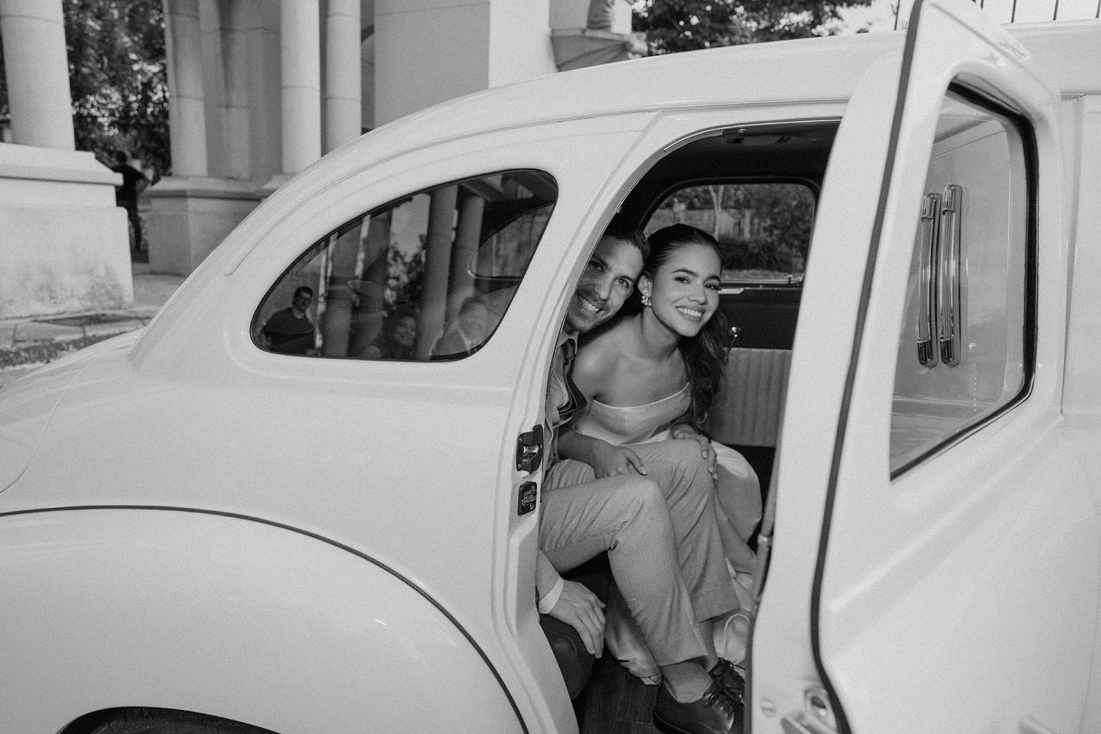 Andrea got ready at Hotel Alta Las Palomas, surrounded by soft morning light and views stretching over the hills. Their ceremony at Parroquia San Miguel Arcángel brought a classic, heartfelt energy to the day. At Alta Fiori, the reception space mixed natural textures with thoughtful design: stone finishes, neutral florals, and warm candlelight set the tone, while a cluster of disco balls above the dance floor brought a lively twist as night fell. With sweeping city views and a relaxed, modern vibe, it was the perfect setting to celebrate. The next day’s session in Ciudad Colón offered a quiet contrast: just the two of them, soft light, and time to breathe it all in.